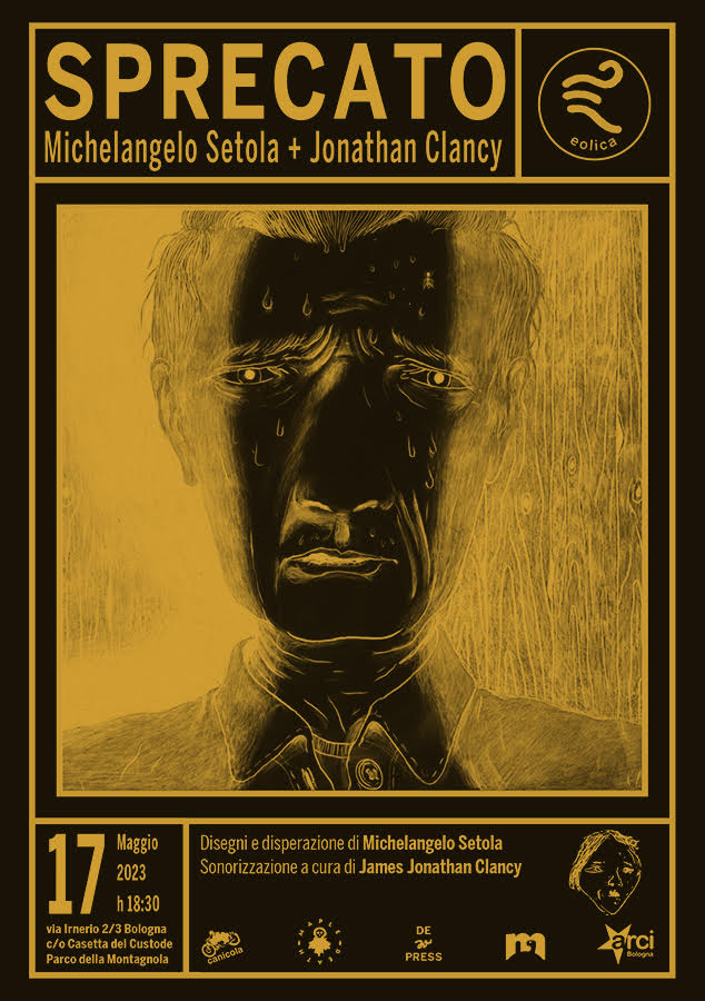 “Gli sprecati” e’ un progetto nato dalla collaborazione di Michelange- lo Setola e Jonathan Clancy (Maple De- ath Records, His Clancyness, A Classic Education, Brutal Birthday, Settlefish), un disegnatore e un musicista che per un anno si sono scambiati tavole disegnate e brani musicali alimentando la propria opera attraverso le suggestioni recipro- che. Questa performance restituisce at- traverso la musica e il disegno dal vivo le atmosfere stranianti di un indefinito sud del mondo, tra natura arida e città industriale.